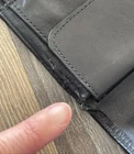 Shows areas with undone threads/trims Seems to have been glued back in one area