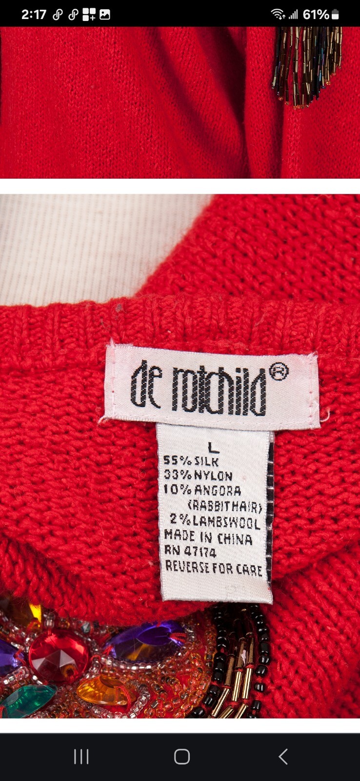 Add a touch of vintage glamour to your wardrobe with this stunning De Rotchild silk sweater. The rich red color and solid pattern make it a perfect choice for any occasion, whether it's a casual day out or a cocktail party. The long sleeve design and beaded accents give it a unique and elegant style that is perfect for the winter and fall seasons. Crafted from high-quality silk material, this women's sweater is both comfortable and luxurious. It's a basic yet stylish piece that will surely become a favorite in your collection.