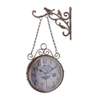 Application It is suitable for living rooms, bedrooms, studies, dining rooms, kitchens, cafes, bars, restaurants, lounges, reception areas, offices, waiting rooms, art galleries, bookstores, flower shops, etc. Specifications Color: Bronze Style: Vintage Shape: Round Material: Iron, Glass Process: Spray Painting Assembly Required: Yes Mounting Type: Wall Mount Indoor/Outdoor Usage: Indoor Display Type: Numbers+ Pointers Battery Type: 2* AA Batteries(Not Included) Glass Dial Diameter(Excluding the Outer Shell): 18cm/7.09in Product Overall Size(H*W): 45*32cm/17.72*12.6in Package Size: 32*27*15cm/12.6*10.63*5.91in Gross Weight: 1.6kg/3.53lbs Net Weight: 1.52kg/3.35lbs Package Included 1* Double-sided Wall Clock Double Sided Vintage Station Wall Clock for Home Decor with Hanging Wall Clock Description This double-sided wall clock is a remarkable addition to any space. It combines a vintage design with a functional clock, making it both a time-telling device and a decorative masterpiece. Whether you want to enhance the aesthetic of your home or add a unique touch to a commercial place, this product is a great option. Key Features Build to Last: Made of premium iron and glass with a spray painting process, this product is rust-resistant, wear-resistant and not easy to deform or fade, ensuring a long service life. Vintage and Elegant: The product features an exquisitely crafted design. The ornate bracket, adorned with delicate leaf-like and animal-inspired motifs, showcases fine craftsmanship. The clock face, with its vintage-style patterns, exudes a timeless charm. The combination of the bracket's intricate detailing and the clock's classic look creates a harmonious and elegant aesthetic. Double-sided Visualization: This product has a double-sided display function for viewing the time in different directions, especially suitable for installation in corridors, open spaces and other areas, which is convenient for people in different locations to read the time. Silent Movement: The silent movement inside the product does not produce annoying ticking sound in the process of timekeeping, creating a quiet and comfortable environment for you, whether you are working, studying or resting without interference. Practical Functionality : This product functions as a reliable timekeeper. Its clock mechanism is accurate, enabling you to keep precise track of time. Energy-efficient : Requiring just two AA batteries (not included) to operate, this product consumes minimal energy. It's an eco-friendly and cost-effective choice that can run for a long time without frequent battery changes. Easy Clean-Up : The smooth surface can be easily wiped clean with a soft cloth. This low-maintenance feature makes it convenient to keep it looking its best with minimal effort. Trouble-free Installation: This product is equipped with an exquisite decorative wall-mounted bracket, making installation a breeze, which is time-saving and effort-saving. Ideal Gift: With its practical function and smart design, it can be given as a great Christmas or housewarming gift for your family and friends. Buy with Confidence: We stand behind all our guests and look forward to assisting you with your purchase. It is our pleasure to answer your confusion and questions. The end of the story between us is not "we sell and you buy". Details Clear Display : The bold, easy-to-read numbers on the clock face make it simple to tell the time from a certain distance. Practical Chain: It not only provides a sturdy and reliable means of suspending the clock from the ornate bracket but also complements the overall vintage look of the clock and bracket. Glass Dial: The glass dial is smooth and flat, with excellent light transmission, and has certain scratch-resistant and wear-resistant properties. It can still maintain a clear display effect after long-term use. Application It is suitable for living rooms, bedrooms, studies, dining rooms, kitchens, cafes, bars, restaurants, lounges, reception areas, offices, waiting rooms, art galleries, bookstores, flower shops, etc. Specifications Color: Bronze Style: Vintage Shape: Round Material: Iron, Glass Process: Spray Painting Assembly Required: Yes Mounting Type: Wall Mount Indoor/Outdoor Usage: Indoor Display Type: Numbers+ Pointers Battery Type: 2* AA Batteries(Not Included) Glass Dial Diameter(Excluding the Outer Shell): 18cm/7.09in Product Overall Size(H*W): 45*32cm/17.72*12.6in Package Size: 32*27*15cm/12.6*10.63*5.91in Gross Weight: 1.6kg/3.53lbs Net Weight: 1.52kg/3.35lbs Package Included 1* Double-sided Wall Clock Notes Please check the product size carefully before purchasing. Please do not expose the product to water. In order to protect the motor core and travel time accurately, please do not use high-power batteries. Please use AA carbon batteries. Please note that the batteries are not included. Please allow the slight color difference caused by the shooting light and the 1-3 cm error due to manual measurement, and make sure you do not mind before ordering. Payment Delivery details Terms of sales About us Contact us Payment We accept ebay payment 。 Fees such as import duties, taxes are not included in the item price or shipping costs. These charges are the buyer's responsibility. Delivery details Shipping: 2-9 working days to: USA Terms of sales We maintain high standards of excellence and strive for hundred percent customer satisfaction. Feedback is very important to us. We hope that you contact us immediately before you give neutral or negative feedback, so that we can address your concerns. It is impossible to address issues if we do not know about them! About us Your satis faction is our ultimate goal. We work hard to earn your trust and future business. Our certified technicians have tested each item before shipping. The unit comes with 1 year limited warranty on all manufacturing defects. a) If you receive a defective item, you may return it or ask for a discount. Please contact us within 14 d