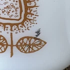 This vintage milk glass coffee mug from the Federal Glass Company features a beautiful sunflower design in golden brown. The mug stands at 3 1/8" tall and is perfect for enjoying both hot and cold beverages. **One small flaw shown in picture.