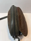 This Fendi shoulder bag is a vintage piece with a beautiful green and oxblood exterior color. It features a unique monogram pattern, brass hardware, and a shoulder strap made of leather. The bag has a zip and snap closure, with inner pockets and a lined interior. It also comes with a bag charm . The bag is medium-sized, with a width of 10 inches, a height of 7 inches, and a depth of 3 inches. The fabric type is knit, and the lining material is leather. The bag is not handmade, and it was manufactured in Italy. This Fendi shoulder bag is a classic designer piece, perfect for casual occasions. The bag is in excellent condition… some folding on bottom and strap but body in good condition. Inside some scratches on leather and tag from brand name is almost gone . I have a certificate of authenticity included.