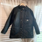 Vintage First Down Insulated PVC Casting Leather Snow Jacket L Gorpcore Utility Bikercore Grunge Black Size L A couple of scratches (see last pictures) , overall great condition, worn only a couple of times Substantial, heavy weight Style profile: Gorpcore, utility, grunge, 80s, 90s, retro