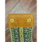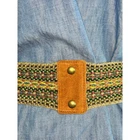 Missing 1 of the dangling charms. This is a vintage half gold tone belt with dangling charms, large medallion, half multicolor fabric and brown suede with 2 snaps from the brand "The White Elephant". "The White Elephant" was a brand that produced wide leather and other style belts in the 1990s, often featuring a sash design with leather-clad buckles. The belts were made in Italy and were known for their genuine leather and distinctive style. SEE PHOTOS, NO Stretch, measurements is approximately 32 inches.
