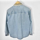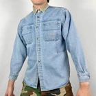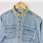 Vintage Guess denim utility shirt in a light blue jean wash. Featuring contrasting corduroy collar, full button up front plus chest pockets featuring embroidered logo detail. Great condition, labelled size women's medium or suits smaller oversized, measurements below Length: 28 inches Pit to pit: 20 inches £3 UK P&P 💌 Model is 5’9 and a men’s medium Please get in touch for more measurements All items are second-hand so please expect small signs of wear - any major flaws will be noted