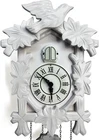 Cuckoo Clock Vintage Large Wooden Wall Clock Handcrafted Inch White Made of linden wood with hand-carved decorations. The bird comes out and sings 'co co' every hour. Detailed instructions on how to set the chime and time are available on the product description page. Two LR20/D batteries Operated (not included) Automatic Night Shut Off Sensor -- night silencer. Adjustable Volume - (High, Low or Shut off) Net size: 13"H x 9-1/2"w x 5-1/4" D Handcrafted Vintage Wood Cuckoo Wall Clock: A charming decoration for your home. All are fitted with manual volume control and shut off switch. One thing that is unique about same quart cuckoos is that it has a photo-cell which is light sensor so you also have an automatic night shut-off When you turn your lights off at night, it automatically turns off the cuckoo call. During the call if cuckoo the double doors open and the cuckoo bird comes out, With same models the cuckoo bird actually flaps his wings as he cuckoos to the sound of running water in the background. The call itself is the acutal recording of a cuckoo bird in the wilds.