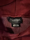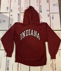 Crafted for comfort and style, this vintage Steve & Barry's hoodie is a nod to classic collegiate fashion with its timeless red hue and retro '80s and '90s design elements. Ideal for all seasons, the heavy-duty cotton knit material ensures durability and warmth, whether you're hitting the basketball court or just out for a casual walk. The pullover features a comfortable crew neck and a hood for those brisk days, with embroidered accents that add a touch of character. Machine washable for easy care, this hoodie is a versatile piece that can be styled for gym training or as a casual outfit for any occasion. Hoodie has a very vintage look, the lettering is pretty old school. Hoodie fits like a small to medium.