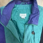 Elevate your wardrobe with the classic style of the IZOD Jacket, a timeless addition that embodies the retro vibe of the 80s and 90s. Designed for men, this size large windbreaker offers a versatile mix of functionality and fashion. The striking color block design in purple, green, and black creates an eye-catching piece that's perfect for various occasions, from casual outings to more spirited events. Crafted from durable nylon, the jacket provides a comfortable regular fit with a stand-up collar and a full zip closure. It's ideal for all seasons, featuring a softshell fabric that promises warmth without the bulk. Practicality is not overlooked, as it comes with pockets and an embroidered logo accent that adds a touch of authenticity. Whether you're hitting the trails or the streets, this jacket's got you covered.