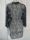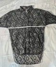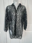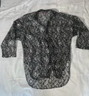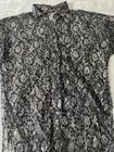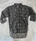 Vintage It’s A Lehigh Black Silver Lace Floral High Low 3/4 Sleeve Button Up Size Large Measurements in photos