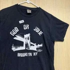 This vintage Jesus shirt is a rare find for any 90s enthusiast. Made by Fruit of the Loom in Brooklyn, NY, this black cotton and cotton blend shirt features a solid pattern with a crew neck and short sleeves. The shirt is handmade with a knit fabric type and has a regular fit. The shirt also includes various features such as a full zip, hooded design, and adjustable accents. It is a limited edition shirt and is preshrunk, lightweight, and breathable, making it suitable for all seasons. The shirt is perfect for those who appreciate vintage clothing and want to add a unique piece to their wardrobe.