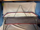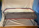 This vintage baby crib is a travel bassinet carrier from the 1960s-1970s, perfect for on-the-go parents. The beautiful blue color with multicolor design makes it a great addition to any nursery. The crib features an adjustable canopy and a portable design with a folding stand for easy storage and transport. The brand of this bassinet is Strollee and it is a unisex item, suitable for any baby. Its rectangular shape and lightweight unit type make it easy to move around. This vintage piece is a great option for parents looking for a unique and practical item for their little one.