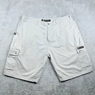Vintage streetwear cargo shorts from Karl Kani in a versatile beige shade. Features multiple utility pockets and durable cotton construction, perfect for casual wear or hip hop inspired styling. Classic Y2K baggy fit with roomy legs. These shorts are verified vintage, produced during the early 2000s Karl Kani streetwear era, highly regarded for their oversized and hip hop inspired designs. Pre-owned in excellent condition. Color is listed as Beige, but may appear Tan/Khaki depending on lighting. • Waist: 22 in flat • Length: 26 in • Rise: 14 in • Inseam: 12 in • Leg opening: 14 in • Material: 100% Cotton All measurements are approximate. See photos. Shop confidently with Simply1Awesome — quality items, fast shipping, and questions always welcome. #KarlKani #Streetwear #CargoShorts #Y2K #HipHop casual, skate, baggy