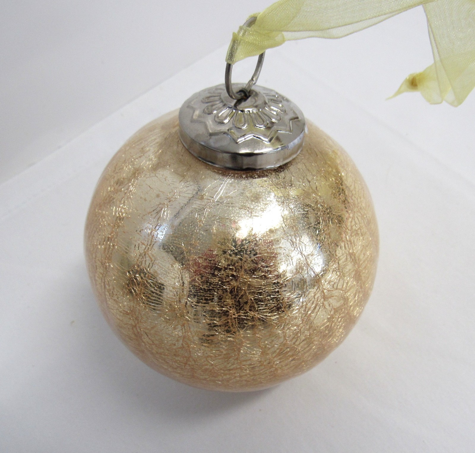 Vintage Kugel Style Mercury Crackle Glass Christmas Ornament - VGUC. Vintage Mercury Glass Kugel Style Christmas Ornament in Very Good Used Condition. This Crackle Glass item is 4 3/4 inches high (cap included) and 4 inches wide. There may be some minor manufacturing flaws, common in vintage glass. There may also be some minor marks from use and age - see pictures for detail. There is also some discoloration of the finish around the cap. This will make a great addition to any Christmas Ornament collection. Ships via USPS Ground Advantage for a flat amount. - Please review all pictures as these are part of the description of this item - Please pay for items within three days of purchase - Feedback is highly appreciated - Message me with any questions