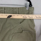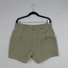 LL Bean Outdoors Shorts Mens 35 Green Chino Hiking Utility Outdoor Trail Casual Pre-owned with normal wash wear and light fading. Small yellow stain near left front pocket. Fabric, stitching, and hardware intact. Brand: LL Bean Outdoors Style: Men's casual cargo shorts in a solid olive green cotton twill. Size on tag: Men's 35 (regular fit waist). Material: 100% cotton; made in Thailand. Details: Flat front with zip fly and button closure, belt loops, front hand pockets with utility-style pocket detail, clean back with no rear pockets, sturdy outdoor-inspired construction suitable for hiking, workwear, or everyday casual wear. 23920 Measurements: Previous washings may change sizing on the tag. Refer to photos above for all measurements. Compare our measurements to one of your favorite garments. Measurements are approximate. All items are bagged and sealed after being photographed, then stored in a smoke free environment. Washed per eBay standards. I carefully package and ship daily. Contact me with any questions. Thanks