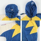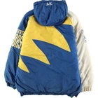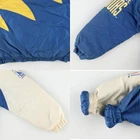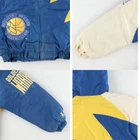 Vintage LOGO ATHLETIC NBA Golden State Warriors Puffer Jacket Men's L Features Specifications Vintage LOGO ATHLETIC NBA Golden State Warriors Puffer Jacket Men's L Brand Name: LOGO ATHLETIC Product Type: Puffer Jacket Model: NBA Golden State Warriors Color: Blue and Yellow Material: 100% Nylon Size: Men's L Condition: Used (C Grade) Other Features: Full zip, Vintage, Embroidered sleeves, Quilted liner This vintage 90s LOGO ATHLETIC NBA Golden State Warriors puffer jacket is a must-have for any fan. Featuring a striking blue and yellow color scheme, this jacket combines style and comfort. It is made from 100% nylon and includes a full zip closure, embroidered sleeves, and a cozy quilted liner. Please note that this is a used item and shows signs of wear, including some stains on the front, sleeves, and hood. Despite its vintage condition, it remains a stylish and functional piece for your wardrobe. Measurements: Length 83cm, Width 73.5cm, Sleeve Length 95.5cm, Underarm Measurement 53.5cm. Embrace the nostalgia of the 90s with this unique jacket!
