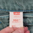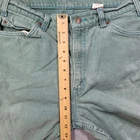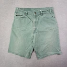 Crafted for comfort and style, these vintage Levi's 550 denim shorts are a classic addition to any wardrobe. With a mid-rise waist and a relaxed fit, they offer a timeless Bermuda style that's ideal for casual outings. The solid green hue is versatile, making these shorts a perfect pairing with a variety of tops and shoes. The durable cotton denim ensures these shorts can endure the rigors of daily wear while maintaining their shape. Equipped with a zip closure and the iconic 5-pocket design, they also feature the sought-after orange tab, confirming their authenticity as a product made in the USA. Size 34 with a 10-inch inseam, they're a staple piece that embodies the essence of American casual fashion.