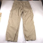 Has stains shown in pics 3 and 6. Has heel drag shown in photo 5. Tagged size 38x32 see photos for measurements to determine proper fit before buying. Thanks.