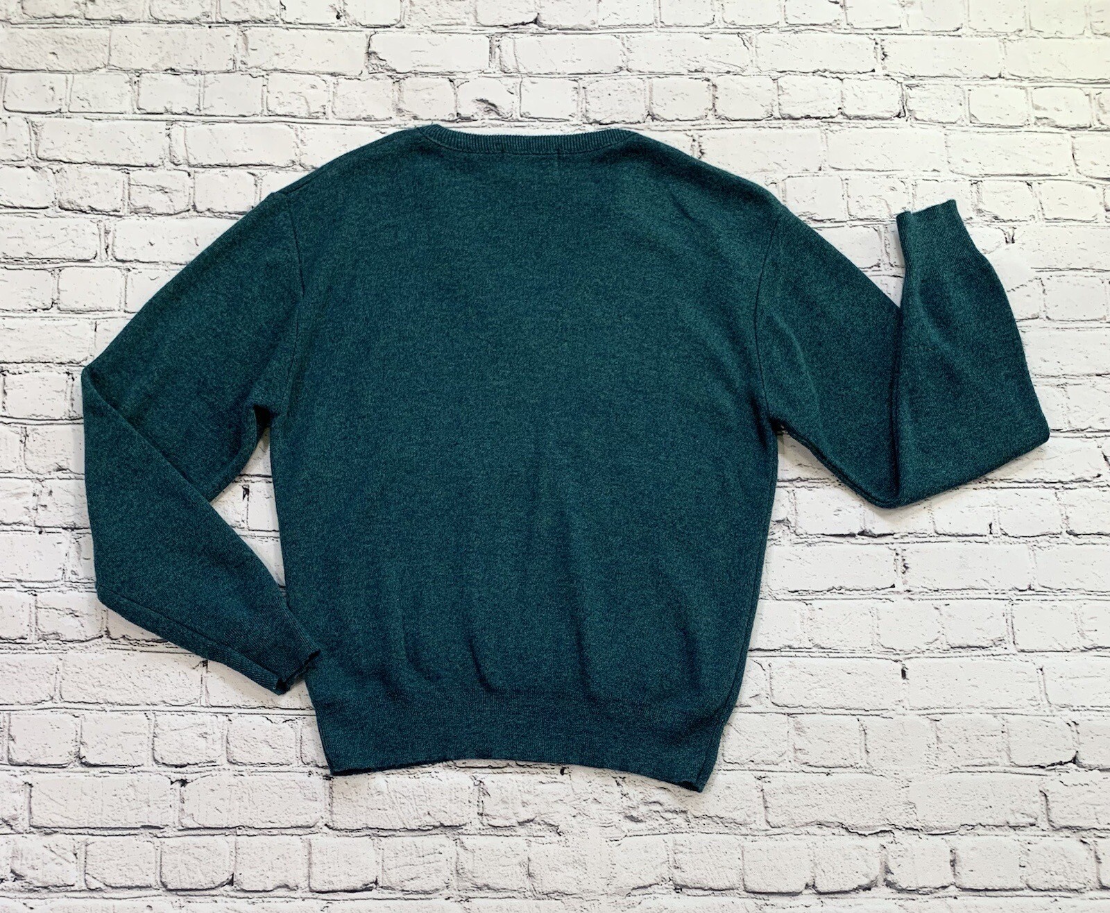 Vintage London Fog Green V-Neck Long Sleeve Pullover Sweater Adult Size M