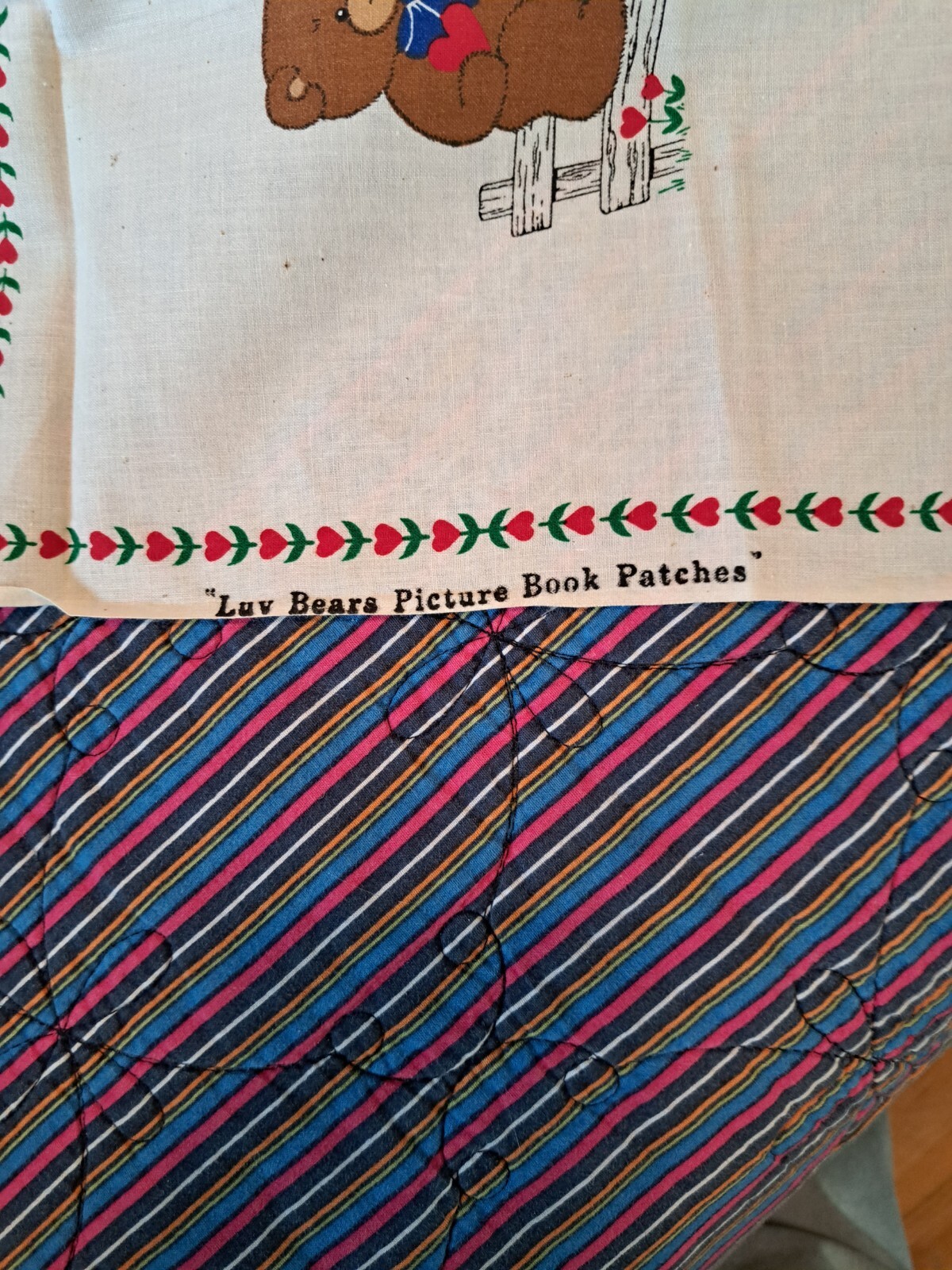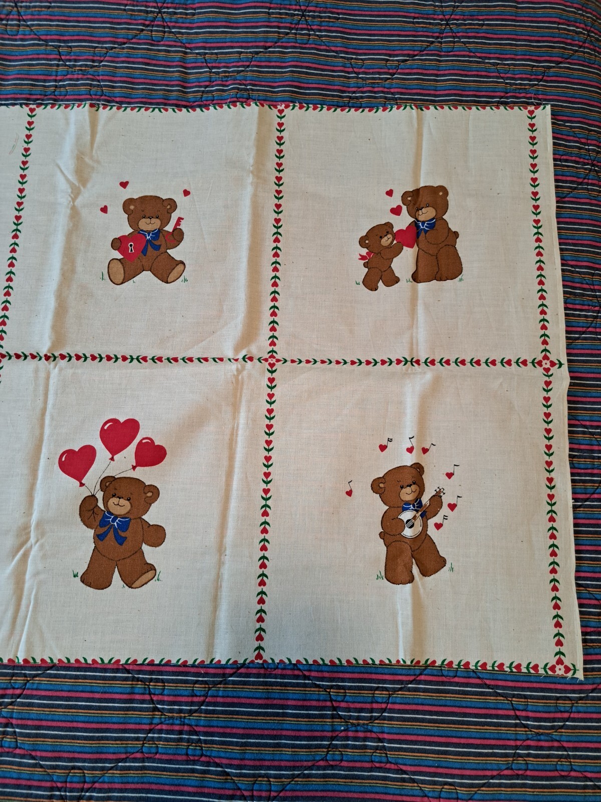 Vintage "Luv Bears Picture Book Patches" Fabric Piece 43.5 x 17.75 inch, 10 squares of bears Cranston Print Works