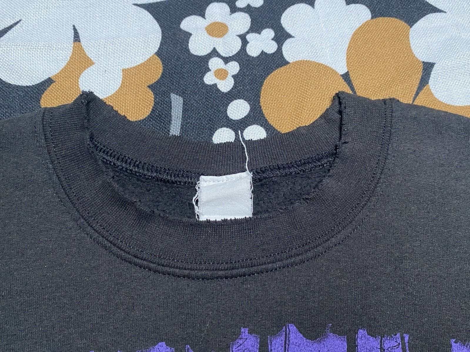 Elevate your wardrobe with the Vintage Madeworn x Revolve Distressed Black Snoopdog Sweatshirt, a unique blend of grunge and hip-hop culture. This sweatshirt showcases an iconic graphic print featuring the legendary Snoop Dogg from his 1993 Doggystyle album, making it a must-have for fans and fashion enthusiasts alike. Its classic crew neck and long sleeves offer a comfortable, regular fit, perfect for any casual occasion. Crafted in the United States, this knit sweatshirt is designed to withstand the test of time. It's a versatile piece that can be styled for all seasons, whether you're hitting the skate park or just enjoying a city walk. With its solid black color and heavy-duty fabric, it's suited for both everyday wear and special events. Based on the measurements it is a small but could also fit a snug medium.