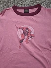 Get your hands on this limited edition vintage Marvel Daredevil t-shirt from Changes. This two-tone red shirt features a solid pattern with short sleeves and a crew neck. The shirt is made of lightweight and breathable cotton knit fabric, making it perfect for all seasons. The shirt is machine washable and has a regular fit, perfect for a casual day out or a night on the town. The shirt is perfect for fans of the Marvel Universe, with features Thor, The Hulk, Captain America, The Punisher, Daredevil, and Elektra. This shirt is a must-have for any collector or fan of the iconic characters.