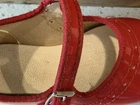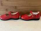 These vintage Mary Jane baby and toddler girl shoes are perfect for special occasions. They have a beautiful red patent finish and are made of faux leather with functioning buckles. The look of these shoes makes them a great addition to any vintage collection. These shoes are an original product and were made in the United States. They are size 4 and have a unique and stylish look that is hard to find in modern footwear. These shoes are a great addition to any vintage clothing, shoes, and accessories collection. From a smoke free home.
