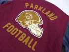 Vintage Melton Football Jacket No.51273 Maroon Size L Heavyweight Outerwear Features Specifications ```html Vintage Melton Football Jacket No.51273 Maroon Size L Heavyweight Outerwear Brand Name: Vintage Product Type: Jacket Model: No.51273 Color: Maroon Material: Body: 60% Wool, 40% Polyester; Sleeves: Synthetic Leather; Lining: 100% Polyester Size: L (Chest Width: 59cm, Length: 69cm, Shoulder Width: 49cm, Sleeve Length: 63cm) Condition: Gently used, may show slight signs of wear Other Features: Classic vintage design, quilted lining for warmth, faux leather sleeves, embroidered helmet patterns This heavyweight outerwear jacket is crafted from vintage-style heavy melton fabric, featuring faux leather sleeves that resemble genuine leather. The jacket showcases a classic design with helmet patterns embroidered on the chest and back, complemented by chain stitching for added detail. The quilted lining provides comfort and moderate insulation, making it perfect for cooler weather. Please note that this item is a sample and may exhibit minor signs of use, such as slight stains or wear. This unique piece is available in size L only, with no other sizes or colors in stock. ```