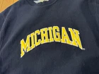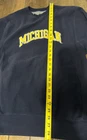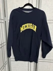 This vintage Michigan Wolverines U of M Steve and Barry's crewneck sweatshirt in size small features a classic crew neck and long sleeves, making it ideal for winter, summer, fall, and spring seasons. The sweatshirt is made of a comfortable blend of polyester and cotton, with a retro 90s style perfect for fans of university and college themes. This pullover garment is machine washable and suitable for activities like gym training, walking, skateboarding, and hiking. Pre-owned in great condition.