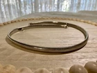 This item is unbranded. It is a vintage, elastic, silver-tone metal belt. It is a very minimalist style worn in an "over and under" style and features a coil-like, almost serpentine pattern. Belt attaches in front using 2 hooks. Size: No size stated but is estimated to be a size SMALL / MEDIUM. Due to its elastic, serpentine style, stretches up to 36 inches from its UNSTRETCHED measured size. Length of entire belt: 30.5 in Width: 0.375 in All measurements are best approximations. Please view all photos, as they are part of the listing's description of the item. Vintage. Pre-owned and in very good condition. The only flaw observed is the silver-tone metal has one worn area in front (that shows up as a dark mark). Metal is otherwise shiny without oxidation. No other flaws observed. Please see all photos. DISCLAIMER: All photographs provided do not use filters with any intent to alter or improve the appearance or condition of the item. All items are inspected carefully & flaws are photographed & presented as transparently as possible to The Buyer. All measurements provided are done to the best of the ability by The Seller. If you have any further questions pertaining to the description of this item, please contact The Seller BEFORE purchasing or placing an offer.