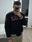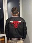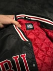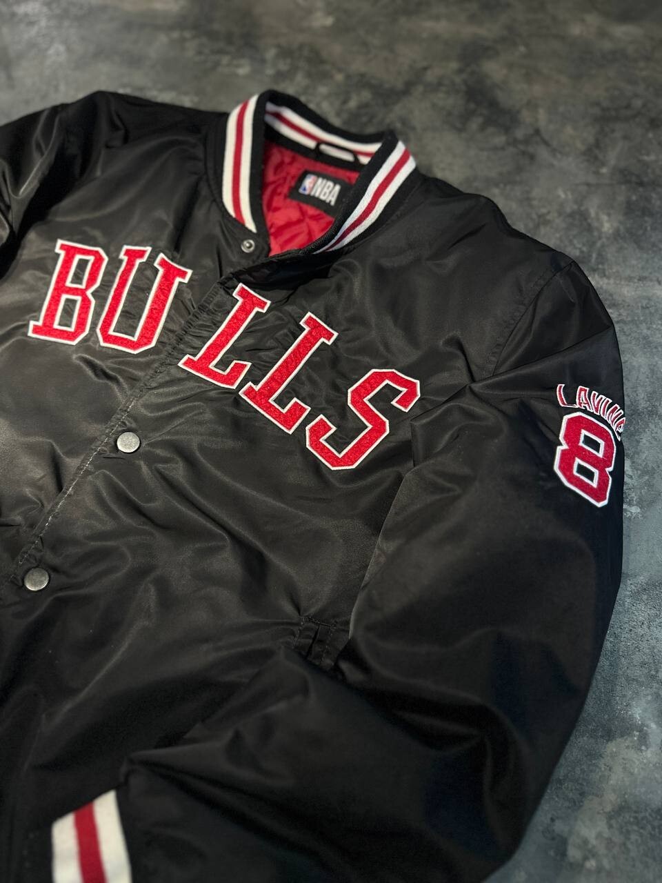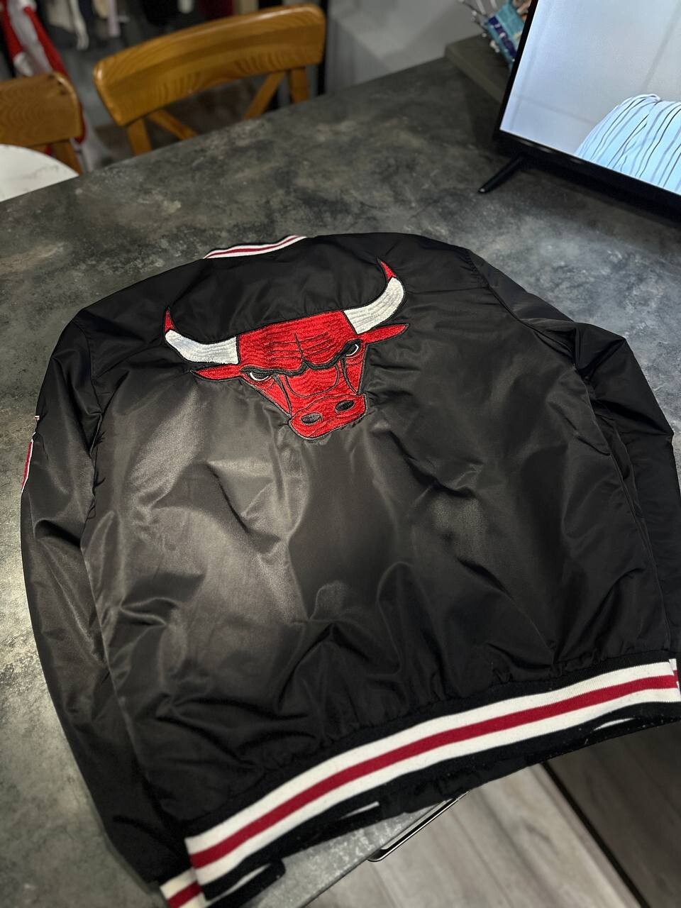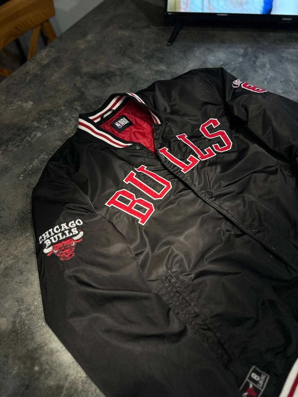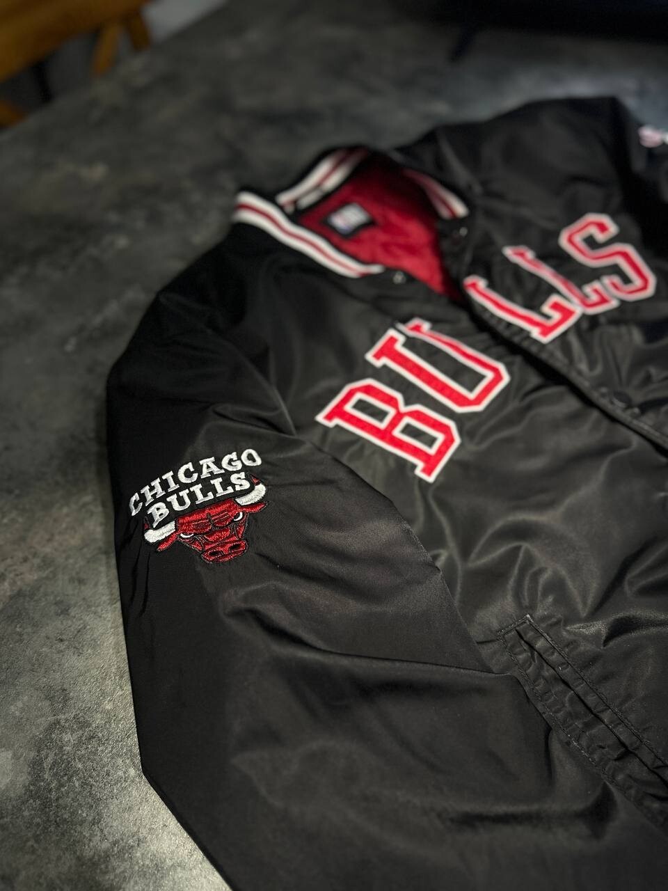 This vintage NBA Chicago Bulls bomber jacket is a rare find for any fan. With a big logo on the back and a check pattern, this jacket is perfect for any occasion, from casual outings to formal events. The jacket is made of polyester and has a canvas fabric type, with a polyester lining material. It features a zip closure and accents of a zipper, along with a regular fit. This jacket is machine washable and comes in a size M. The jacket is perfect for anyone who loves cars, biker, or Italian themes, as well as those who love USA, Christmas, or outdoor themes. This jacket is a must-have for any vintage or classic clothing enthusiast.