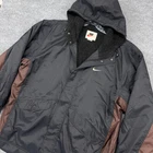 Vintage Nike Jacket Mens L Black Brown Hood Sherpa Fur Lined Coat White Tag 90s In good condition other than one small hole in the hood as shown. Please see photos for measurements.