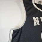 This is a black Nike basketball jersey with a white "NIKE" and "44" on the front. The jersey has a white v-neck collar and white trim around the arm holes and bottom hem. The jersey is size XL. The jersey is made of mesh material. It is a vintage style jersey and would be perfect for a basketball fan who wants to add a unique piece to their wardrobe. Condition: Great preowned condition As part of a limited run (3044 of 4000), its a rare find for collectors and fans alike. Please see the pictures for exact measurements and further details.
