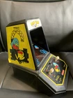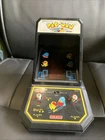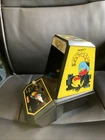 This is a vintage Coleco Pac-Man mini arcade cabinet from 1981, manufactured by Arcade Classics in China. The model number is 9562. It is a multicolor desk top arcade game featuring the popular game title Pac-Man. This item is an original reproduction of the classic arcade game and is a collectible piece for arcade gaming enthusiasts.