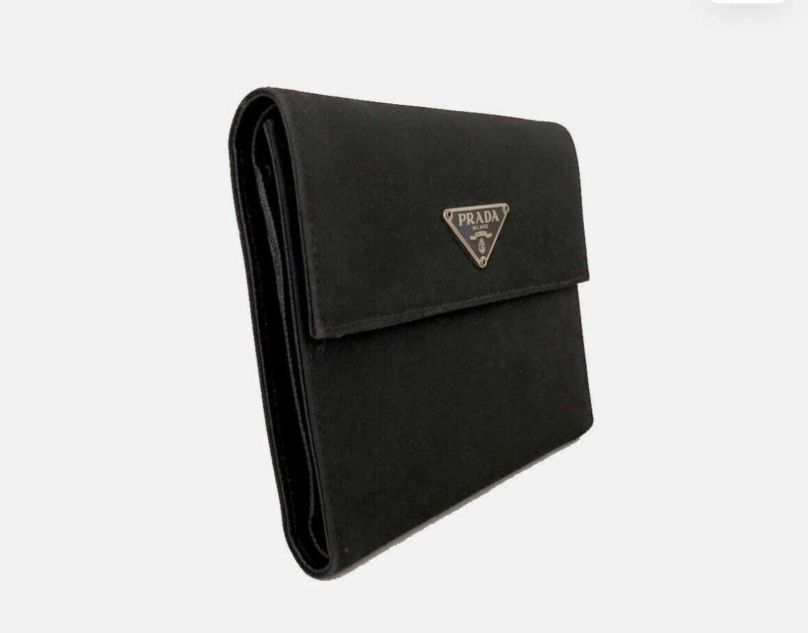 The Vintage PRADA Logo Plate Nylon Trifold Wallet in Black is a stylish accessory designed for women. Made of high-quality nylon material, this wallet features the iconic PRADA logo plate for a touch of luxury. With a trifold design, it provides practicality and organization for storing cards, cash, and other essentials. Perfect for adding a sophisticated touch to any outfit, this wallet is a timeless piece
