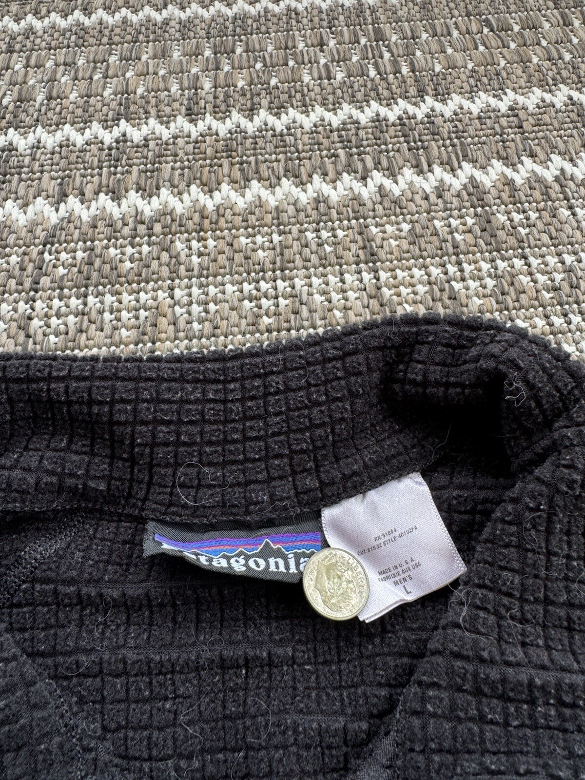 Flawless, no rips or stains !! measurements are posted This vintage Patagonia sweatshirt is a black fleece pullover with a 1/4 zip closure. It features a Grand Marnier promotional logo, suitable for men in size L. The material is polyester fleece, with a regular fit and long sleeves. Ideal for walking or hiking in winter, fall, or spring. Made in the United States. Machine washable for easy care.