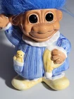 Vintage RUSS TROLLS Troll Blue Hair Pajamas Teddy Bear Doll Coin Bank Good Luck. Condition is Used. Shipped with USPS Ground Advantage.