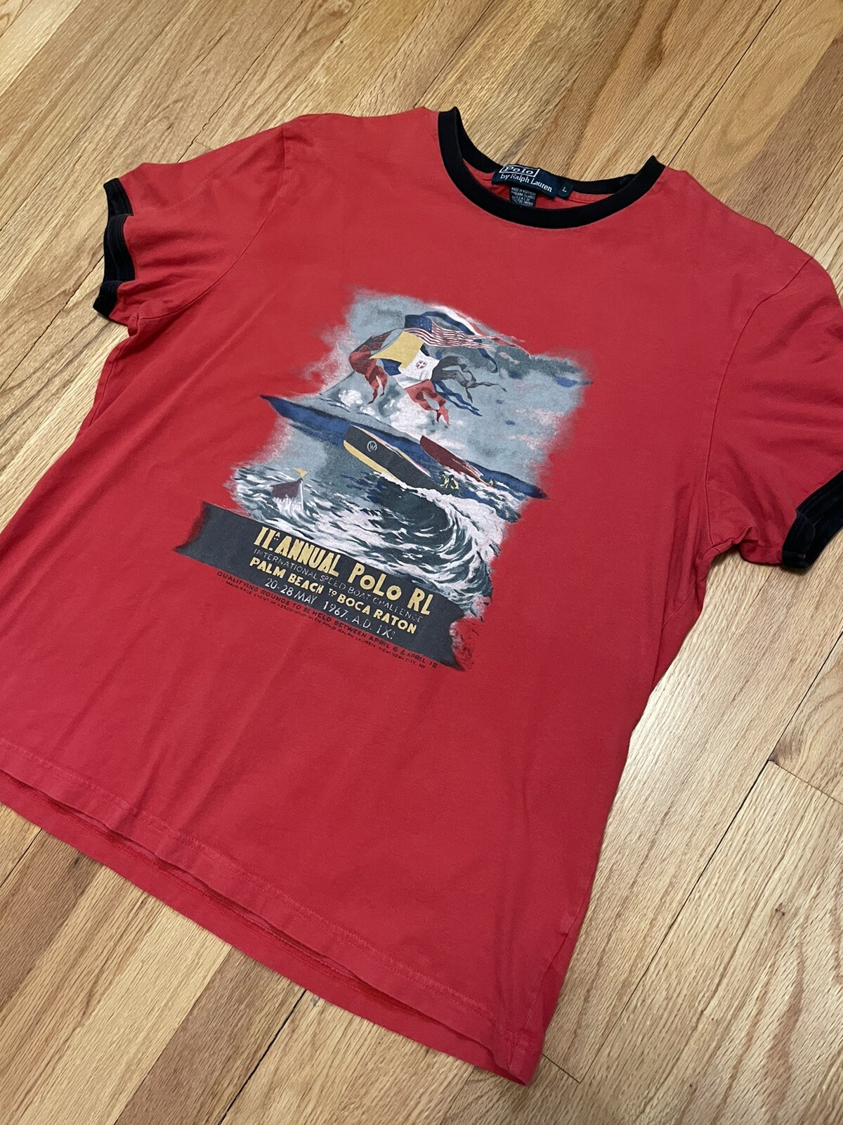 VINTAGE RALPH LAUREN POLO RINGER T-SHIRT - RARE INTERNATIONAL SPEED BOAT CHALLENGE GOOD USED CONDITION AS SHOWN IN PICTURES - SOLD AS IS PLEASE EMAIL ME IF YOU NEED ANY FURTHER INFORMATION - THANKS FOR LOOKING SHIPPING TO YOUR LOCATION WILL BE CHARGED