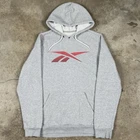 Elevate your casual style with this vintage Reebok hoodie. This grey hoodie features a colorful logo accent on the chest, and is made of a comfortable blend of cotton, polyester, and cotton blend fabrics with a soft fleece fabric type. The hoodie has a pullover style with a drawstring closure, long sleeves, and pockets for added convenience. Ideal for gym & training, walking, cross training, CrossFit, running & jogging, this hoodie is machine washable and perfect for all seasons. Whether you're into sports or just looking for a classic and retro addition to your wardrobe, this hoodie is a must-have. The unisex design makes it suitable for both men and women. Flaws pictured if any. Measurements pictured.