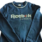 This vintage Reebok sweatshirt is a classic piece that will never go out of style. It features a blue color and a pullover style, making it easy to wear for any occasion. The sweatshirt is available in a size small and is perfect for both men and women.