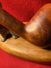 Please find listed a vintage Royal Sovereign ‘54’ briar estate billiard. The smooth brown briar bowl/stummel does show a couple of age spots/knicks, but is very solid with good grain patterns as well as distinct stampings of the manufacturer’s name plus “Made In England” on the left shank and “54” stamped on the right shank. The original push stem is solid as well. The stem does have minimal hazing/chatter plus oxidation as expected. The stem fits the shank snug and true. For its size, the unit does feel a bit heavier in hand. Stand not included. Items are shipped within 48 hours of confirmed purchase, except for weekends and holidays. Combined shipping for same-day purchases is available (adjusted for weight/dimension plus supplies and handling). No holds - transactions canceled if not paid within 72 hours of winning bid. Items are offered preowned “as is”. Photographs are considered part of description. Shipping to continental United States only. No international shipping. Thank you for your consideration.