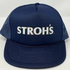 Vintage 80s 90s Stroh's Beer Snapback Trucker Hat Brewery Breweriana Blue Mesh Five Panel A Frame Baseball Cap Will be shipped in a box. Condition: In gently used condition. No flaws noticed. See photos.