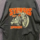 Celebrate the 63rd anniversary of Sturgis Motorcycle Festival with this vintage t-shirt. Featuring a solid black color, short sleeves, and a crew neckline, this shirt is made of a comfortable cotton and cotton blend material with a knit fabric type. The shirt is adorned with an embroidered Sturgis logo and button accents, making it a perfect addition to any biker or motorcycle enthusiast's collection. This limited edition shirt is available in size 3XL and is suitable for all seasons, including winter, summer, fall, and spring. The shirt is preshrunk, lightweight, hooded, and has a full zipper with adjustable features. Additionally, the shirt is double-sided, breathable, and quick-drying, making it a perfect choice for any outdoor activity.