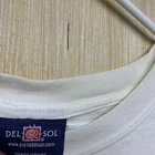 99This vintage Del Sol surfing shirt is a must-have for any hippie, colorful, or 90s enthusiast. Made with cotton and cotton blend material, this shirt features a crew neckline, short sleeves, and a regular fit. The white shirt has a solid pattern and is adorned with blue characters, an embroidered logo, and button accents. This limited edition shirt is preshrunk, lightweight, and quick-drying, making it suitable for all seasons. It is also breathable, stretchy, and has a double-sided design. Perfect for those who love the classic and hip hop themes, this shirt is a true gem. Get your hands on this Y2K piece of art today!
