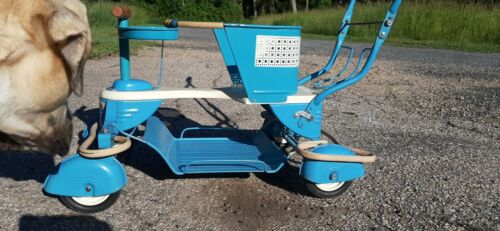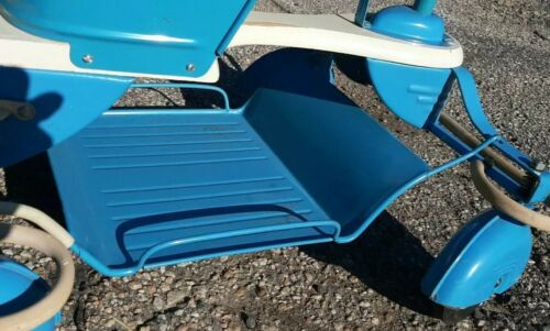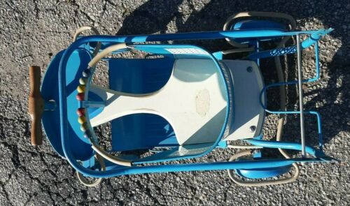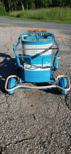 Up for sale os this Vintage all original Taylor Tot Blue Baby Stroller Walker with Art Deco Era Fenders. The dog Aka " Willow " is not included .This Taylor Tot blue stroller & walker is in really good complete and in original condition and has just a couple issues to mention. Its missing the label on the seat and has some wear on the front label , the fenders has a few scratches and the rubber bumper on the front is splitting on the corners but they are all still fully intact . It has very little paint loss and I dont see any rust and everything functions properly and collapsible and can remove bottom tray to use as a walker . I have it listed as a local pick up but would be open to shipping the item but have to find box first and dont want to guess on the shipping cost ,I will also drive to meet someone for a small fee and of course depending on how far I have to go . Please check out all the photos and if you have any questions please don't hesitate to ask.