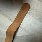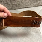 Vintage Tooled Brown Leather Crossover Belt Criss Cross Western Montana Yellowstone Moroccan Asymmetrical Gorgeous belt with unique details. It's in overall great shape but at one set of leather stitches the leather string has broken midway... could be replaced, or worn as is, does not affect function of the belt. See photos for details and other signs of wear. Total length without buckle: ~40". Other measurements in photos.