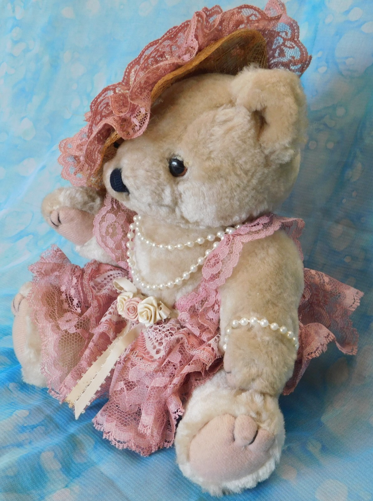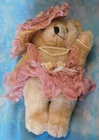 This bear may or may not be handmade. I cannot tell for sure. There are no maker's tags. The arms and legs are movable. The hat, clothing and beads are non-removable. I have had this bear over 25 years but do not know the year it was actually made. Plea se see condition description and photos. Ask any questions prior to purchase. Thank you for considering this item. Combined shipping is available when possible. stock note: A-14