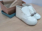 Vintage Walker Shoes NEW In Box Baby Booties Bell’s Soft White Leather NOS Sz 3 These shoes were purchased from a family owned store that has been around since the early 1940's. I purchased their old dead stock inventory. They have been stored in a climate controlled environment. Each shoe will come in the original box and tissue paper. The shoes are white with bells and have laces. Due to the vintage age of the shoes, some may or may not have slight yellowing. Remember these are original 1950's baby shoes not a reproduction.