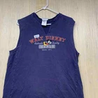 This vintage Walt Disney shirt is a must-have for any Disney fan. The blue shirt features a solid pattern with short sleeves and a crew neck. It is made of a cotton and cotton blend material with an embroidered design. The shirt is a size L and has a regular fit. This 90s shirt has a vintage feel and is perfect for any season. It is a limited edition item with features such as being preshrunk, lightweight, and breathable. The shirt is also double-sided and has a full zip. The design is inspired by the Disney theme park and features the Disney logo. This shirt is a great addition to any wardrobe and is perfect for anyone who loves Disney.