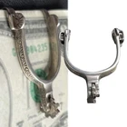 Features 1. Classic and minimalist: Our rare retro Western Spurs sterling alloy wallet is made of genuine sterling alloy. This wallet features a rare retro Western Spurs design and is a luxurious accessory for fashionable men. 2. Secure firmly: Each wallet has a secure and reliable grip, which can firmly hold your banknotes and credit cards in place, making them orderly, easy to access, and preventing accidental slipping. 3. This smooth wallet is of moderate size and suitable for placing in any pocket, securely holding cash, credit cards, and paper currency, making it a modern alternative to bulky wallets. 4. Convenient wallet: This alloy wallet can be used for almost any occasion. Whether you bring it to the office or a nightclub, it can keep your cash and cards organized. 5. The best gift for men: This alloy personalized carved wallet can be used for gifting or safekeeping. It is an ideal gift for fathers, husbands, brothers, friends, professional colleagues, or groom's officials. The perfect gift for Christmas, Valentine's Day, Father's Day, birthdays, graduation ceremonies, anniversaries, and weddings. Specification Material: Alloy Size: 5*3*1 cm Package Include: 1x Engraved Money Clip