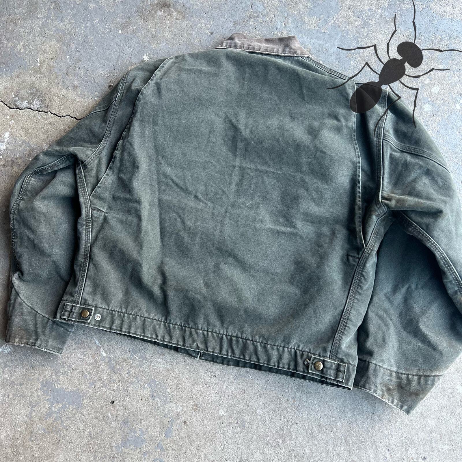 Vintage y2k J97 MOS green carhartt detroit work wear jacket. Really awesome jacket! That perfect mos green. The main Carhartt tag is missing but the size tag is still there! Measures 28 pit to pit and 27 length. Couple markings on each sleeve at the wrist cuff. Please check measurements before purchasing. I do my best to show any flaws in pictures. Quick shipping! Bundles encouraged! @ants_haul on Instagram.