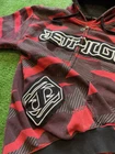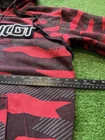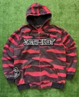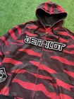 This vintage Y2K Jetpilot MMA Elite Style Grunge Hoodie is a striking red XL hoodie made of cotton material. It features a full zip closure with accents like a zipper and logo, giving it a unique and edgy look. This hooded sweatshirt has a grunge theme and a vintage style, ideal for men looking for a cool and retro addition to their wardrobe. Perfect for casual wear, this hoodie combines comfort and style effortlessly.
